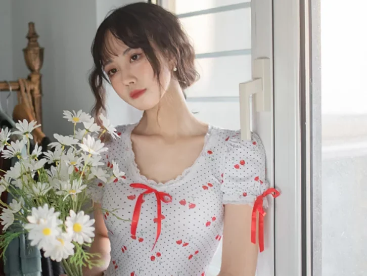 再细瞅细节,这 32 张图真没一张多余的。有的是近景拍她发间别着的玫瑰发夹,金属夹子的纹路都清晰;有的是远景拍她坐在铺着白布的桌子旁,桌上摆着玻璃花瓶,里面插着两三支红玫瑰,连花瓶上的印花都没糊。