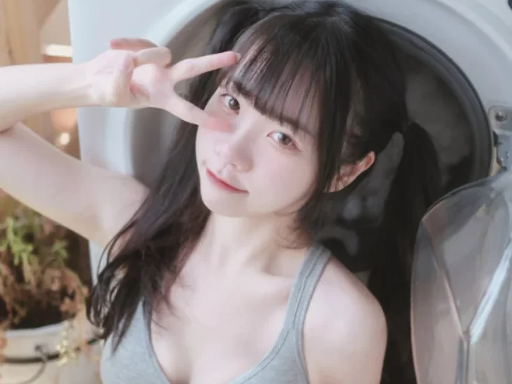 这组照片的魅力,还在于可可对细节的把控。她没有选择浓妆艳抹,而是用淡淡的裸妆,突出皮肤的水润感。头发随意地扎成低马尾,几缕碎发散在耳边,像是刚洗完澡还没来得及收拾。这种“未经雕琢”的状态,反而让她的可爱多了一份真实感。有一张照片,她抱着一个大大的抱枕,蜷在沙发一角,嘴角微微上扬,像是在回味什么好笑的事。