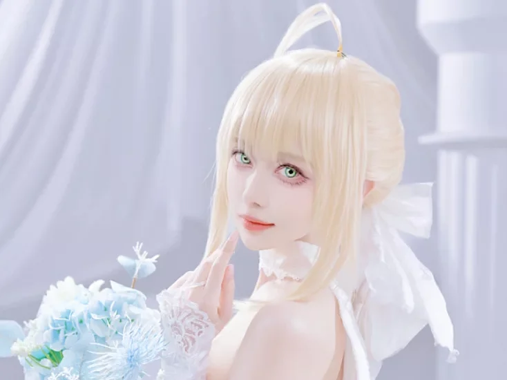 我们今天的主角,Coser_Shika小鹿鹿,显然就是这种人。看编号,NO.0131。一百三十多套作品的积累,这说明她早就在这个圈子里站稳了脚跟。到了这个阶段,出作品已经不是为了证明自己,更多的是一种对自己热爱的交代。选择Saber花嫁,更像是一种“还愿”,一种对经典的致敬。