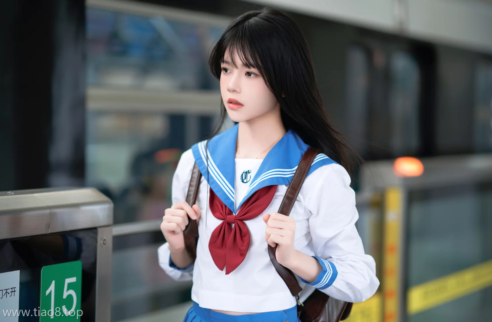 当然,每个创作者对“生活感”的理解是不一样的。比如另一位Coser MiMi Chan,她的作品可能更偏向于捕捉一种动态的、活泼的少女感,就像是一段Vlog的精彩切片,充满了动感。而这次的Coser桜桃喵,她营造的则是一种“静”的氛围。她抓住的是地铁里那种独特的、人来人往下的孤独感。