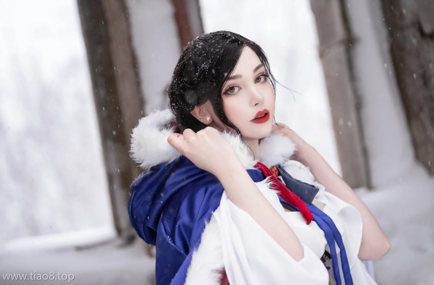 说到白雪公主的cosplay,就不得不提eloise软软。她也演绎过这个经典角色,但风格完全不同。eloise软软更偏向传统童话风,而Sayathefox这次的版本更像是一个现代寓言。她站在枯树枝下的那张,背景是灰蒙蒙的天空,雪花落在她睫毛上,整个画面透着一股冷冽的诗意。